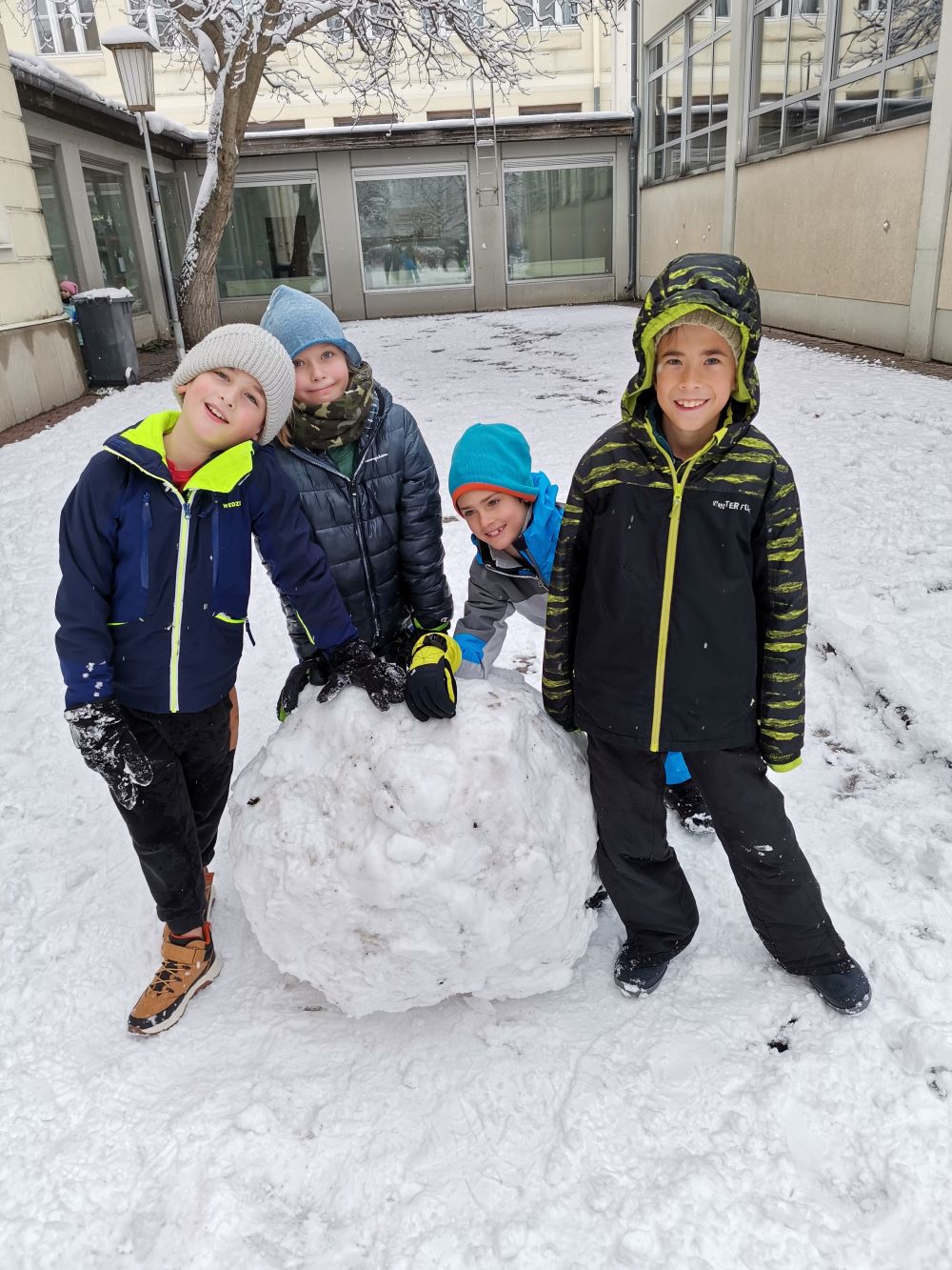 Endlich hat es im heurigen Winter das erste Mal geschneit. Die Kinder konnten es kaum erwarten in unserem herrlichen Pausenhof eine Schneeballschlacht zu machen oder einen Schneemann zu bauen. Die Kinder der 3. Klasse strengten sich beim Bau einer riesigen Kugel richtig an, während die Kinder der 2. Klasse schöne Schneeengel machten.