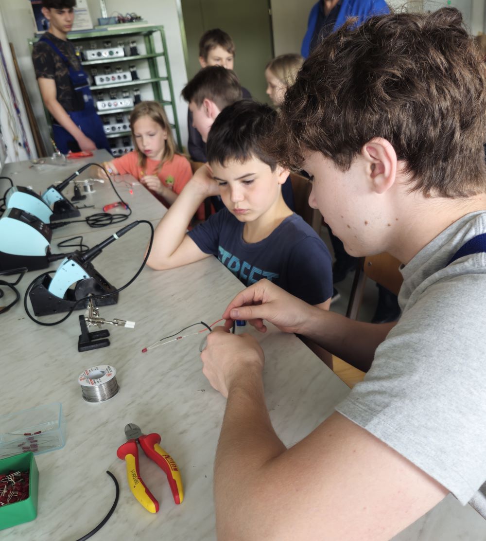 Die Kinder der 3b besuchten die HTL Mödling und durften in den Werkstätten der Gebäudetechnik, der Fahrzeugtechnik und der Mechatronik coole Dinge herstellen. Es wurden unter anderem Kreisel aus Aluminium, Metall-Autos und Herzen aus Rohren hergestellt. Die Kinder freuten sich über ihre coolen, selbstgemachten Mitbringsel.